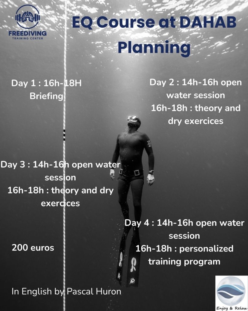 As a professional freediving center, we ensure your comfort and enjoyment during your experience and vacation. Located in the best spot in Dahab, with top-quality individual equipment, 3 comfortable air-conditioned rooms, and carefully selected instructors, we guarantee you an unforgettable adventure.